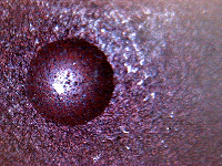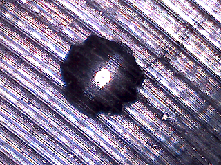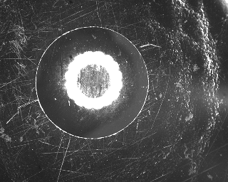 l 自动测量方法:一般情况下样品表面和压痕有亮度对比度,选择默认亮度方法。根据不同种类样品表面设定自动测量参数1 (默认值为2), 如图(1)表面未抛光有亮斑点,则设参数1为1; 如图(2)表面有粗划痕, 则设参数1为大数如6。如果样品表面和压痕之间没有亮度对比,如图(3),选择边缘方法。
