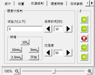 机器控制: 如果软件版本支持硬度计控制,界面右下方有机器控制栏如下