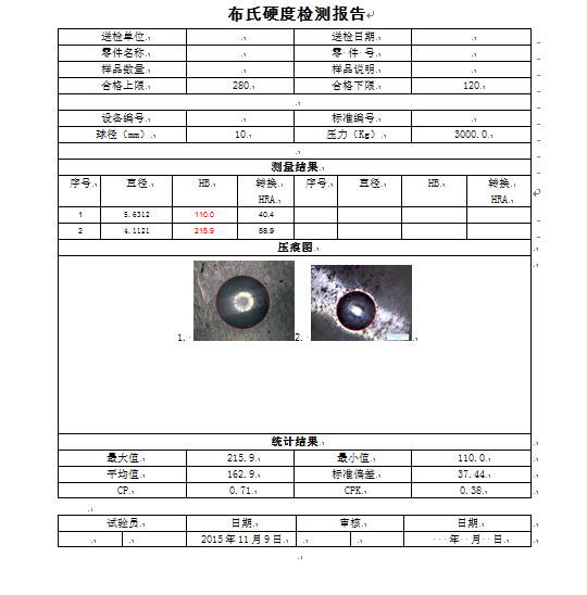 l HB下限上限: 用于报警(红色不合格标记,G/N栏显示不合格),和Ck和Cpk计算,并且在硬化曲线上显示