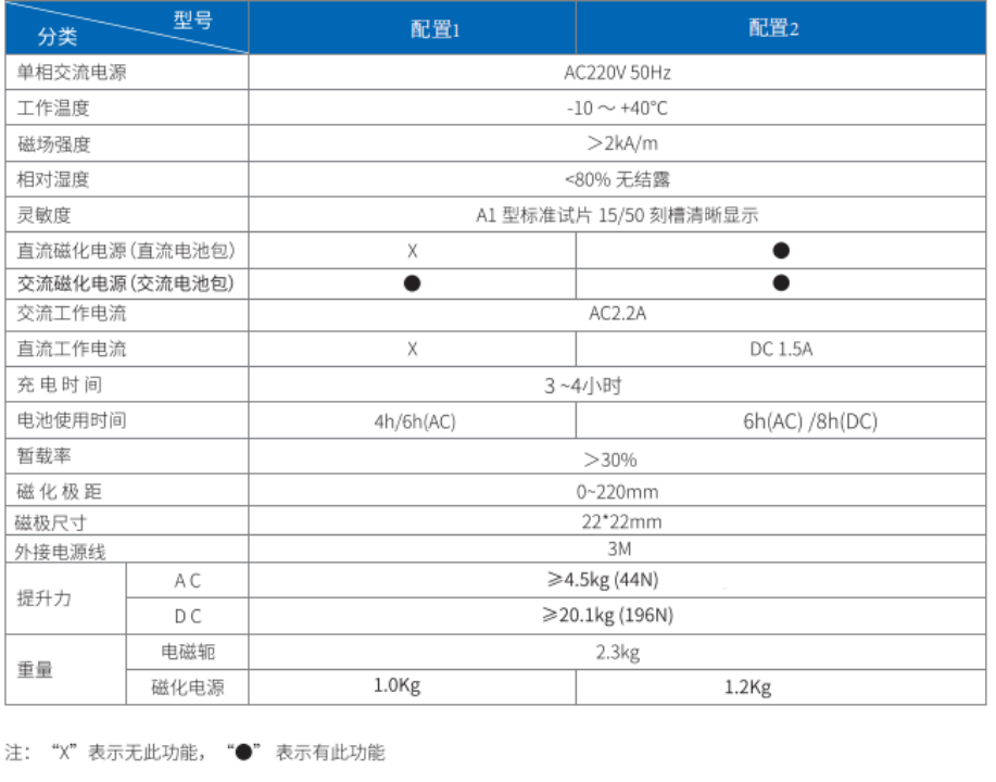 仪器采用可控硅开关,低电压输出安全可靠,探头采用固定式和外加可调式两种,可调式探头可根据不同部件形状调节极靴间距,并有良好的接触。