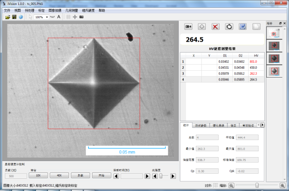 二. 自动测量:系统自动测量压痕,并自动绘制硬化曲线,更新统计结果等;